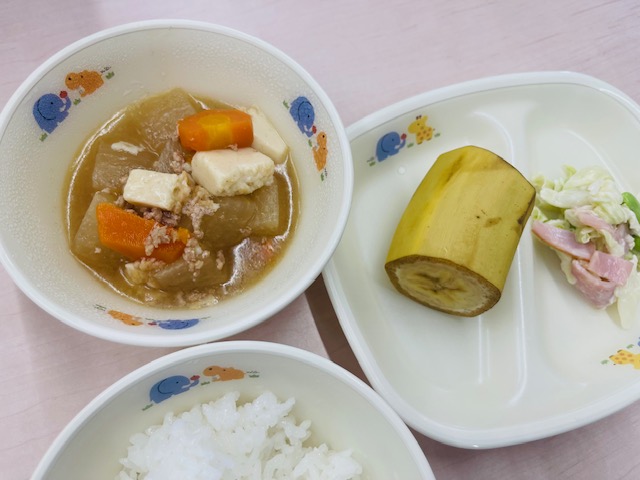 今日(3/7)の給食です - ごはん 大根と厚揚げのそぼ...