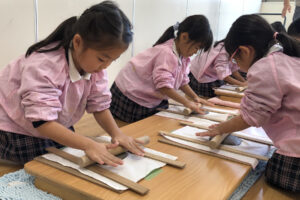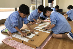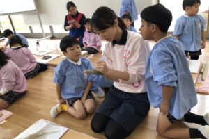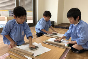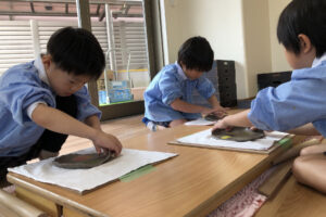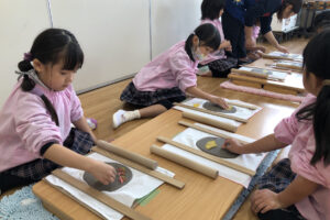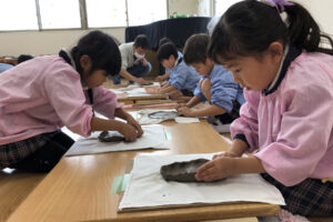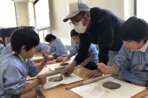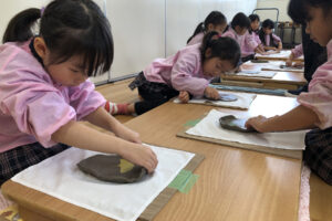 『お皿はいつ頃出来上がりますか?』と待ち遠しい子どもたち。八千代校舎の窯で焼いてもらい、出来上がるのは卒園する頃です。素敵な卒園記念品になりそうです。