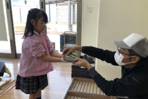 今日は安芸高田市の八千代校舎の方に来ていただき、お皿の作り方を教わりました。