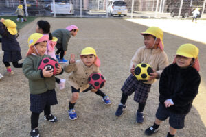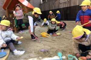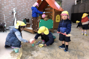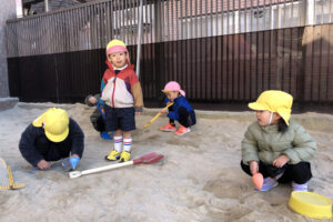 外に出ると、鬼ごっこやだるまさんが転んだ、ボールを投げたり、砂場で大きな穴を掘ったりととても楽しそうです。