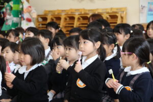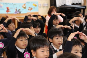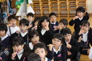 乳歯が抜けて永久歯が少しずつ生えてきている子も多い年長さん。自分の歯を大切にして、健康な歯でご飯をよく噛んでたくさん食べて、大きくなりましょうね。
