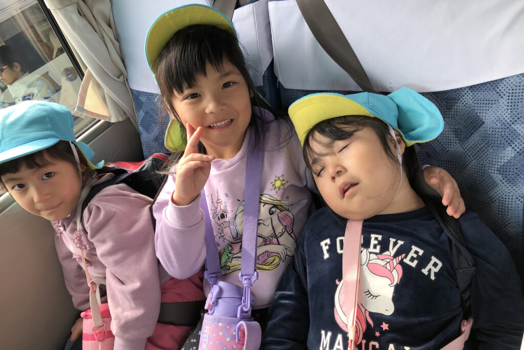 みんなで新幹線ののぞみに乗せてもらい、二人ずつ運転席に座って「次は〇〇です。」とアナウンスもしてみたり、座席では職員さんにいろんな質問をして楽しく過ごしました。