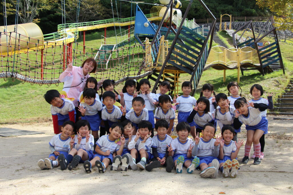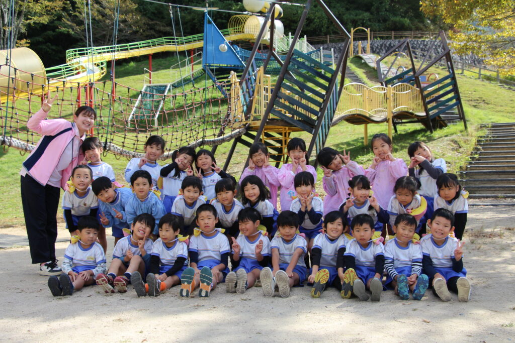 バスに乗って海田総合公園に着くと、大きなハチのシンボルが見える滑り台を目指して歩きました。ローラーの長い滑り台や吊り橋を渡ったり網のネットを登ったりといろいろな遊具に大喜び。友達を誘い合って楽しみました。