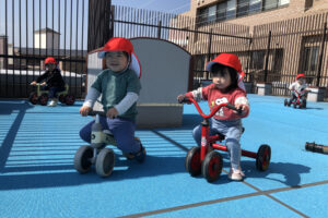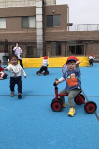 入園・進級して2週間が経ちました。朝の登園時に不安で涙が出ていたお友達も、新しい先生やお友達の顔を覚え、受け入れの先生に手を伸ばして泣かずに登園できる日も多くなりました。