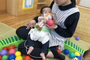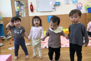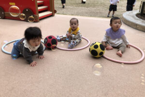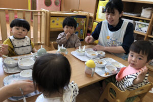 お昼寝やお迎えを待つ時間など寂しくなり涙が出ることもありますが、日々の子どもたちの成長を感じながら、これからもたくさんの笑顔が見られるように過ごしていきたいと思います。