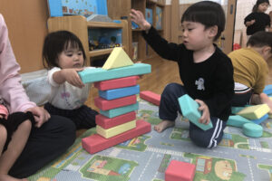 クラスのお部屋でも、気になるおもちゃを手に取ったり、言葉がけに笑顔を返したりして、先生達と一緒に好きな遊びや安心できる場所を見つけて、少しずついろいろな表情を見せてくれるようになりました。